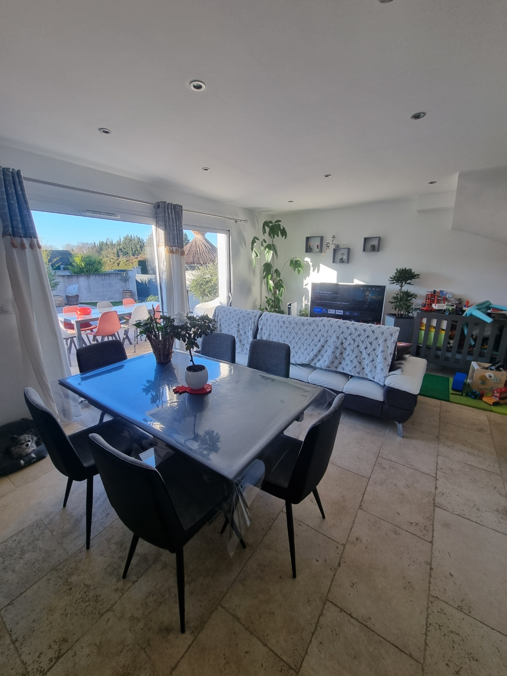 Villa fonctionnelle et lumineuse RT 2012 au centre de RAPHELE RDC: une véranda, une entrée, un séjour salon...
