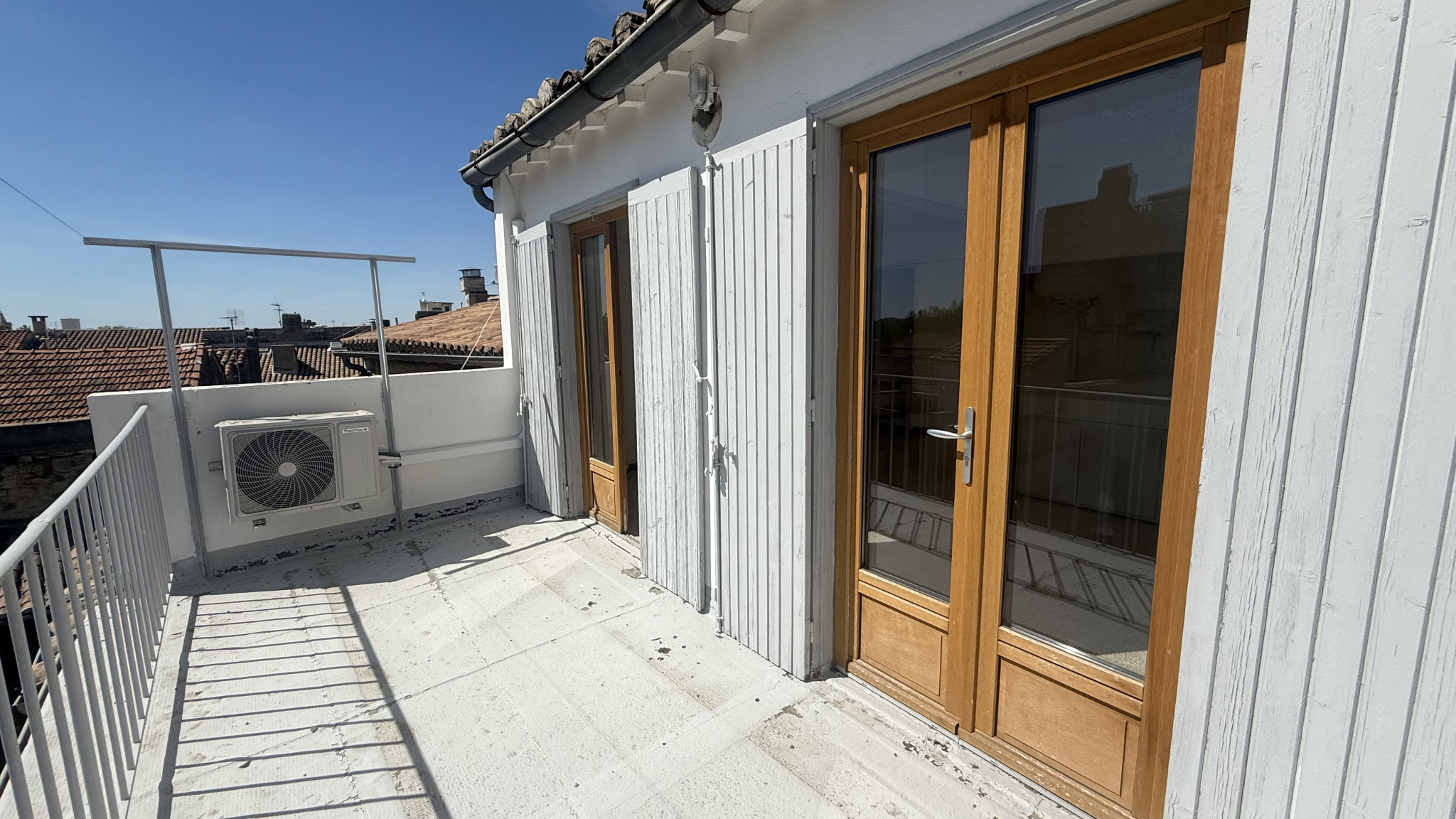Appartement place de la Mairie de type 2 au 3 ° étage sans ascenseur comprenant : un séjour avec cuisine ouverte, belle terrasse, chambre, salle d'eau, WC Chauffage par climatisation SH 34m² Loyer 630€ dont 30€ de charges Dépôt de garantie 600€ Honoraires 442€ dont 102€ pour l'état des lieux Non meublé Libre Contact 06.13.25.01.96